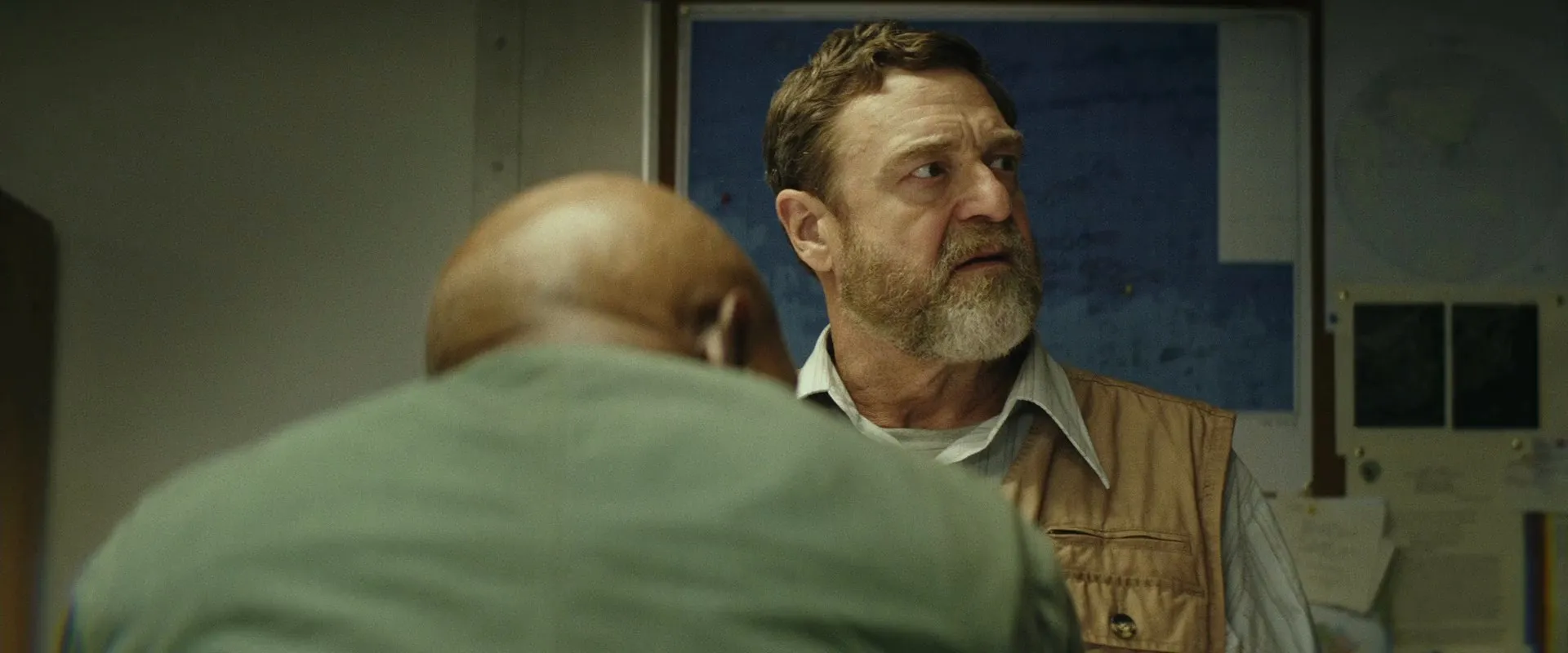 Cast: Tom Hiddleston as Captain James Conrad, Samuel L. Jackson as Lieutenant Colonel Preston Packard, John Goodman as Bill Randa, Brie Larson as Mason Weaver, Jing Tian as San Lin, Toby Kebbell as Maj. Jack Chapman / Kong Mo-Cap Services, John Ortiz as Victor Nieves, Corey Hawkins as Houston Brooks, Jason Mitchell as Glenn Mills, Shea Whigham as Earl Cole, Thomas Mann as Reg Slivko, Terry Notary as Kong Mo-Cap Services, John C. Reilly as Hank Marlow, Marc Evan Jackson as Steve Woodward, Eugene Cordero as Reles, MIYAVI as Gunpei Ikari, Will Brittain as Young Marlow / Marlow's Son, Richard Jenkins as Senator Al Willis, Allyn Rachel as Secretary O'Brien, Robert Taylor as Athena Captain, James M. Connor as General Ward (voice), Thomas Middleditch as Jerry (voice), Brady Novak as Base Guard, Peter Karinen as Chinook Pilot, Brian Sacca as Chinook Co-Pilot, Joshua Funk as Seismic Soldier, Daniel F. Malone as Boat Captain, Glenn Kiwi Hall as Boat Captain, Garreth Hadfield as Crew Chief, Shannon Brimelow as Kamikaze Pilot, Jon Quested as Dead Pilot, Korey Williams as Sunglasses Pilot, Dat Phan as Bar Thug, Cynthy Wu as Thug's Girlfriend, Beth Kennedy as Marlow's Wife, Bryan Chojnowski as Chicago Taxi Driver, Nick Robinson as Bar Guest (uncredited), Kevin Kent as Military technical advisor, Erin Moriarty as Bar Guest (uncredited)