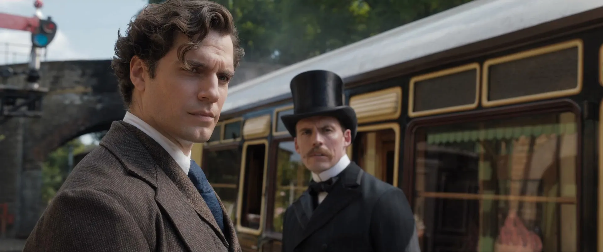 Cast: Millie Bobby Brown as Enola Holmes, Henry Cavill as Sherlock Holmes, Sam Claflin as Mycroft Holmes, Helena Bonham Carter as Eudoria Holmes, Louis Partridge as Lord Tewkesbury, Adeel Akhtar as Lestrade, Fiona Shaw as Miss Harrison, Frances de la Tour as The Dowager, Burn Gorman as Linthorn, Susan Wokoma as Edith, Claire Rushbrook as Mrs. Lane, David Bamber as Sir Whimbrel, Hattie Morahan as Lady Tewkesbury, Gaby French as Seamstress, Paul Copley as Station Master, Ellie Haddington as Miss Gregory, Alex Kelly as Miss Gregory II, James Duke as Footman, Connor Catchpole as Gardener, Sarah Flind as Tea Shop Assistant, Dempsey Bovell as Fleet Street Hawker, Neil Bell as Constable, Sofia Stavrinou as Young Enola, Sophie Dixon as Toddler Enola, David Kirkbride as Agitator, Delroy Atkinson as Porter, Mary Roscoe as Grace Whitting, Anthony Aje as Newspaper Boy (House of Lords), Anthony Rickman as Newspaper Boy (Fleet Street), Philip Scott-Wallace as Newspaper Editor, Tuyen Do as Boarding School Teacher, Esther Coles as Miss Fox, Owen Atlas as Young Sherlock Holmes (uncredited), Gianni Calchetti as Roy (uncredited), Paul Parker as Police Inspector (uncredited), Heather Pearse as Hawker (uncredited), Jay Simpson as Conductor (uncredited)